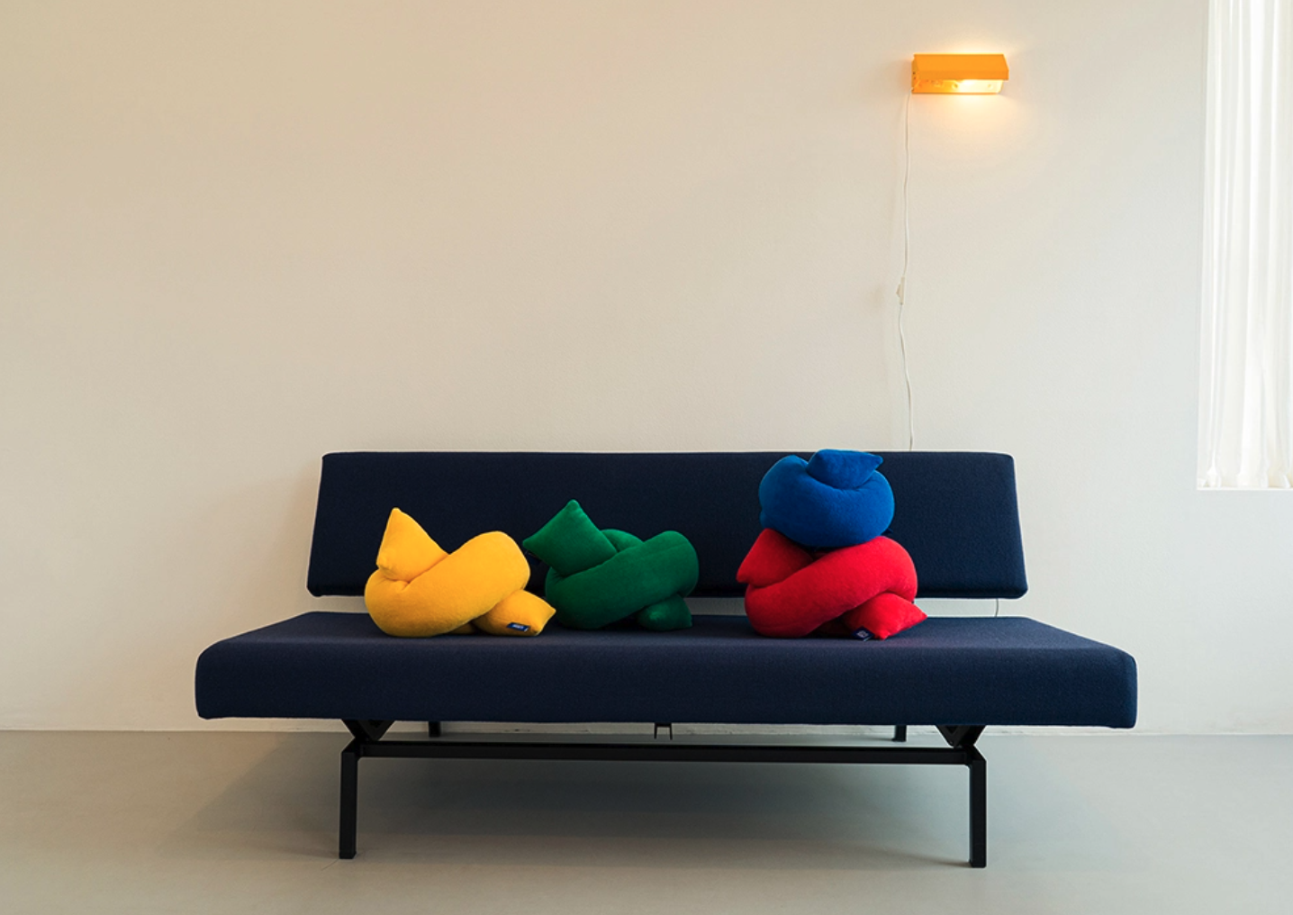 구불구불한 물결 모양의 위글쿠션은 그 자체로 공간의 리듬을 만드는 오브제입니다. 파스텔톤부터 비비드 컬러까지 다양하게 나오기 때문에 여러 색을 믹스매치하면 소파가 순식간에 팝아트적인 감성으로 바뀌어요.