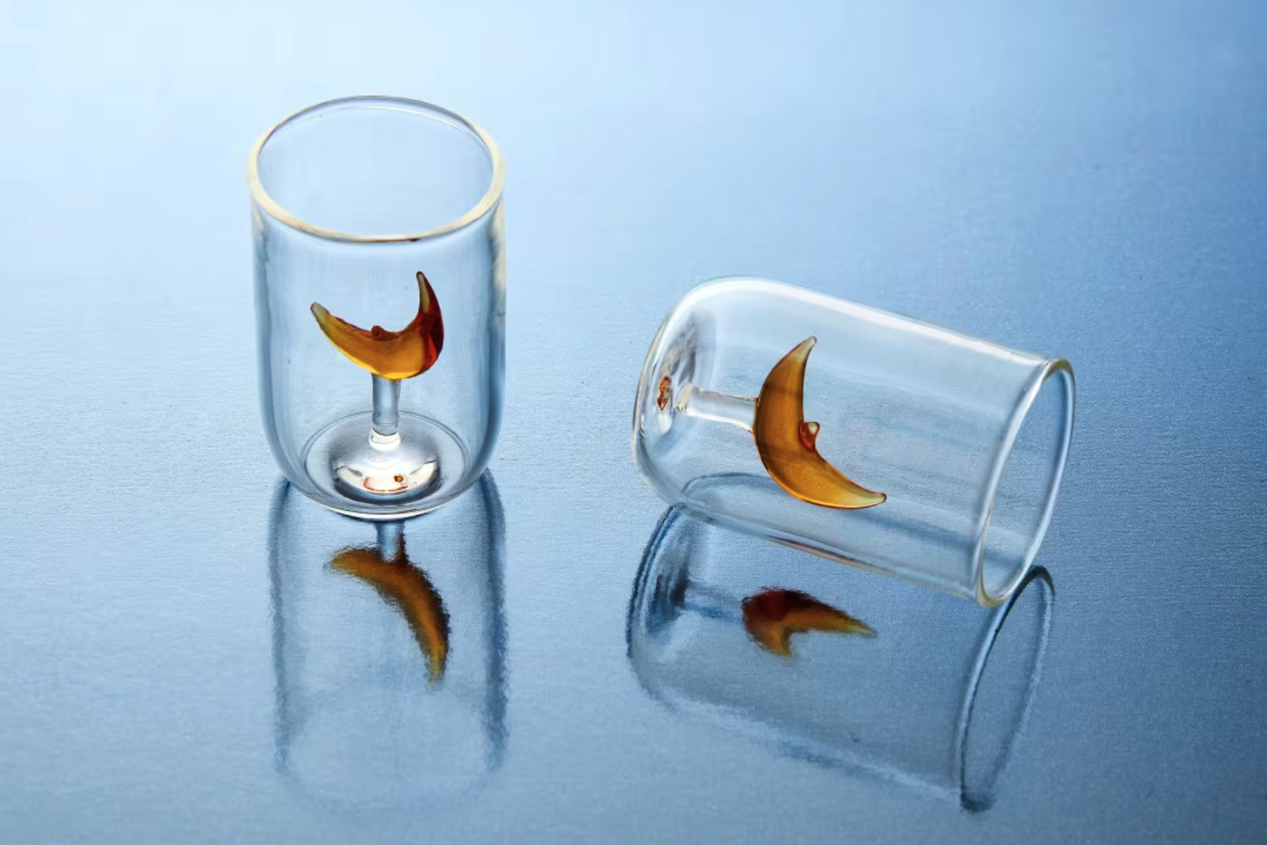 잔 속 달 모양 오브제가 빛과 함께 반짝이는 시그니처 제품.
