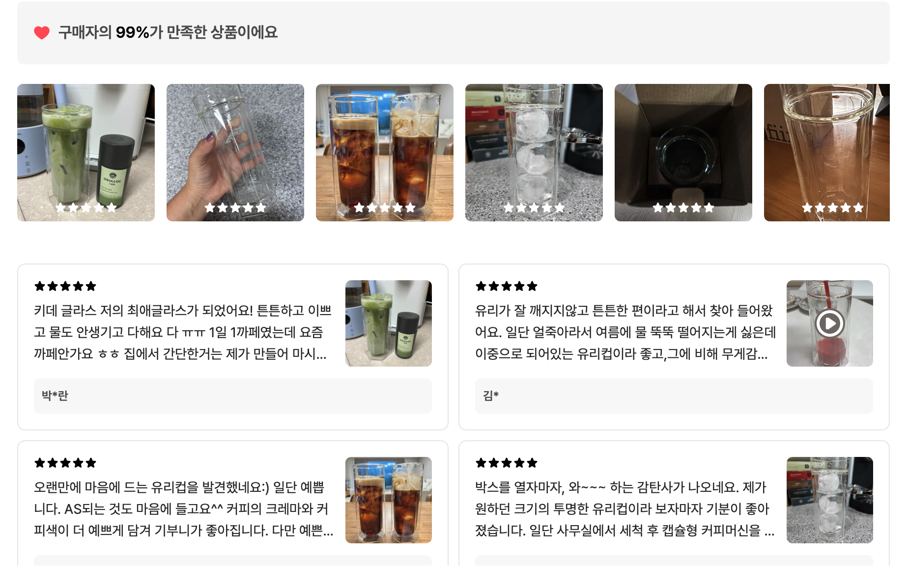- “커피 등 음료 따라놓으면 정말 이쁩니다 ㅎㅎ 깨지지 않고 오래 썼으면 합니다.”