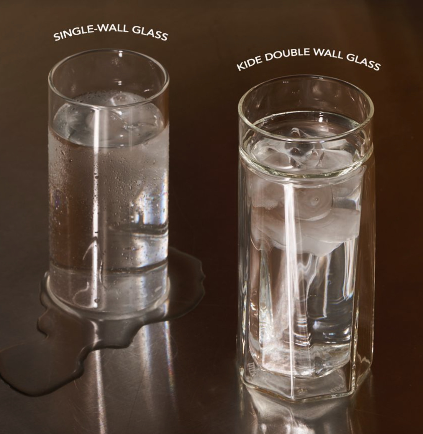 그런데 키데 글라스는 결로 방지 기능이 탑재돼 있어요. 얼음을 가득 넣어도 컵 겉이 뽀송뽀송하게 유지돼서 언제나 깔끔해요. 테이블 위에 물자국이 남지 않으니 관리도 편하고, 특히 나무 테이블을 사용하는 분들에게는 진짜 꿀 기능이라고 할 수 있죠.