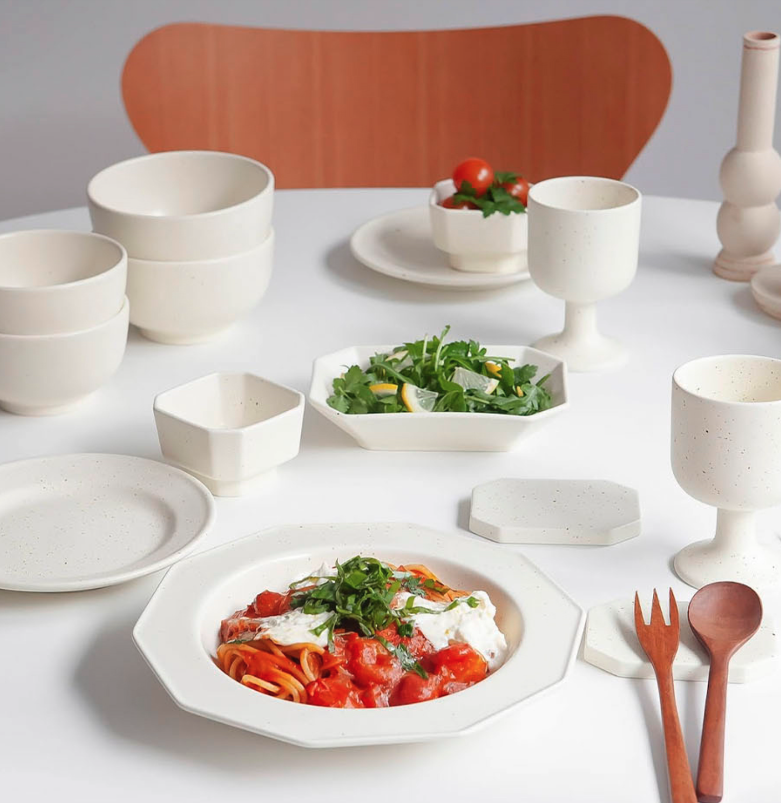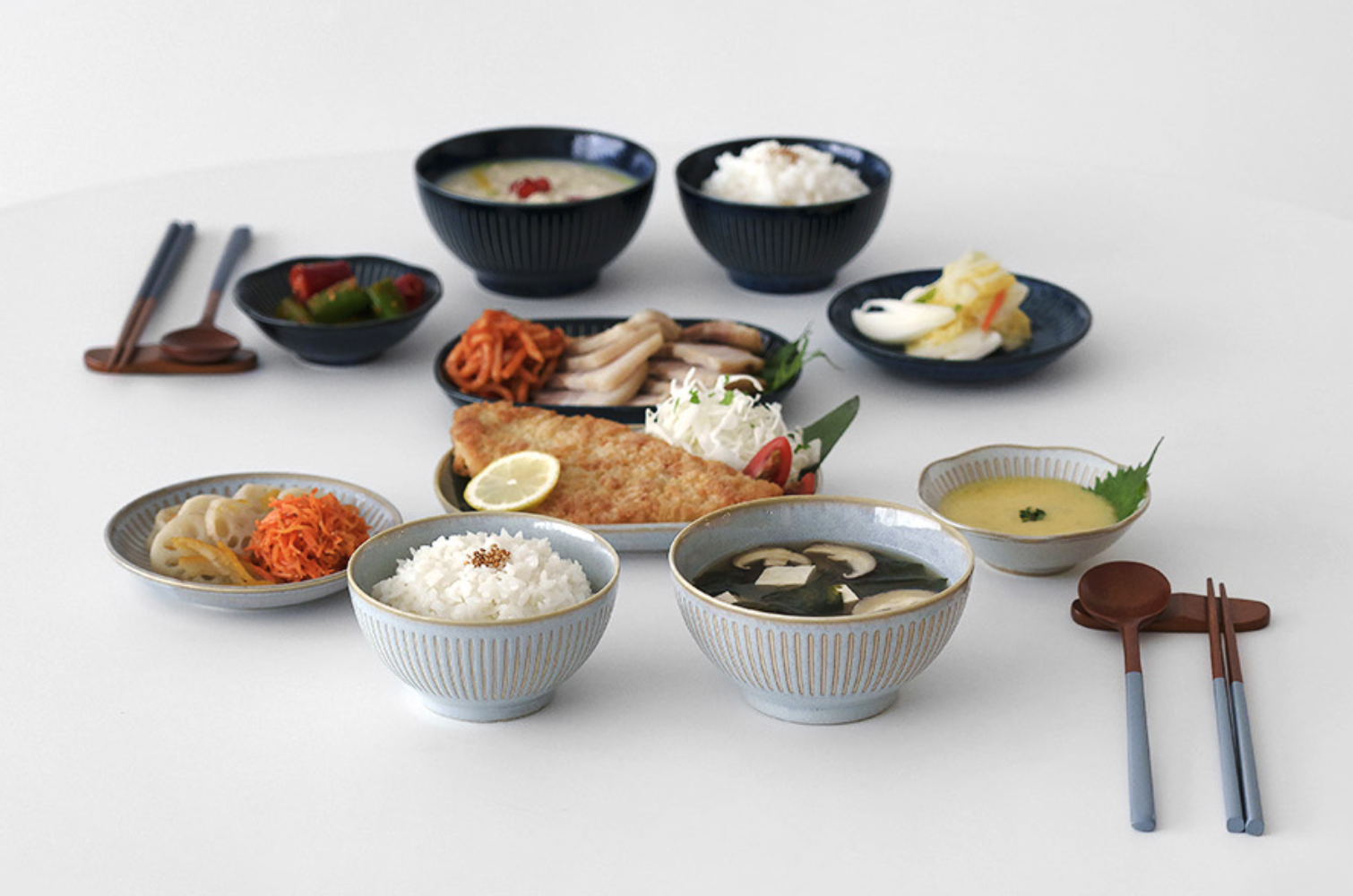 군더더기 없는 심플한 디자인이라 어떤 요리에도 잘 어울리고, 특히 데일리로 쓰기 좋아요. 1인 세트와 2인 세트가 있어 혼자 사는 분들부터 신혼부부까지 고르게 선택할 수 있습니다. - 활용 예시