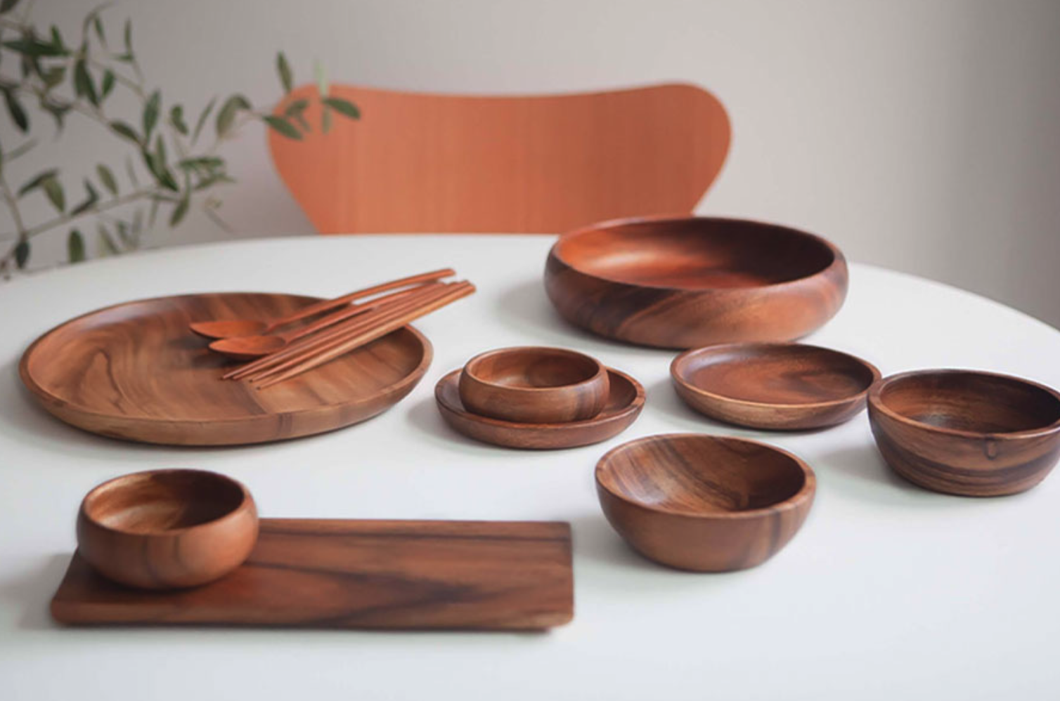 나무 소재의 고유한 질감 덕분에 그릇 하나만 놓아도 식탁이 내추럴하게 변합니다. 차갑지 않고 따뜻한 무드를 주기 때문에 계절에 상관없이 늘 인기 있어요. - 활용 예시
