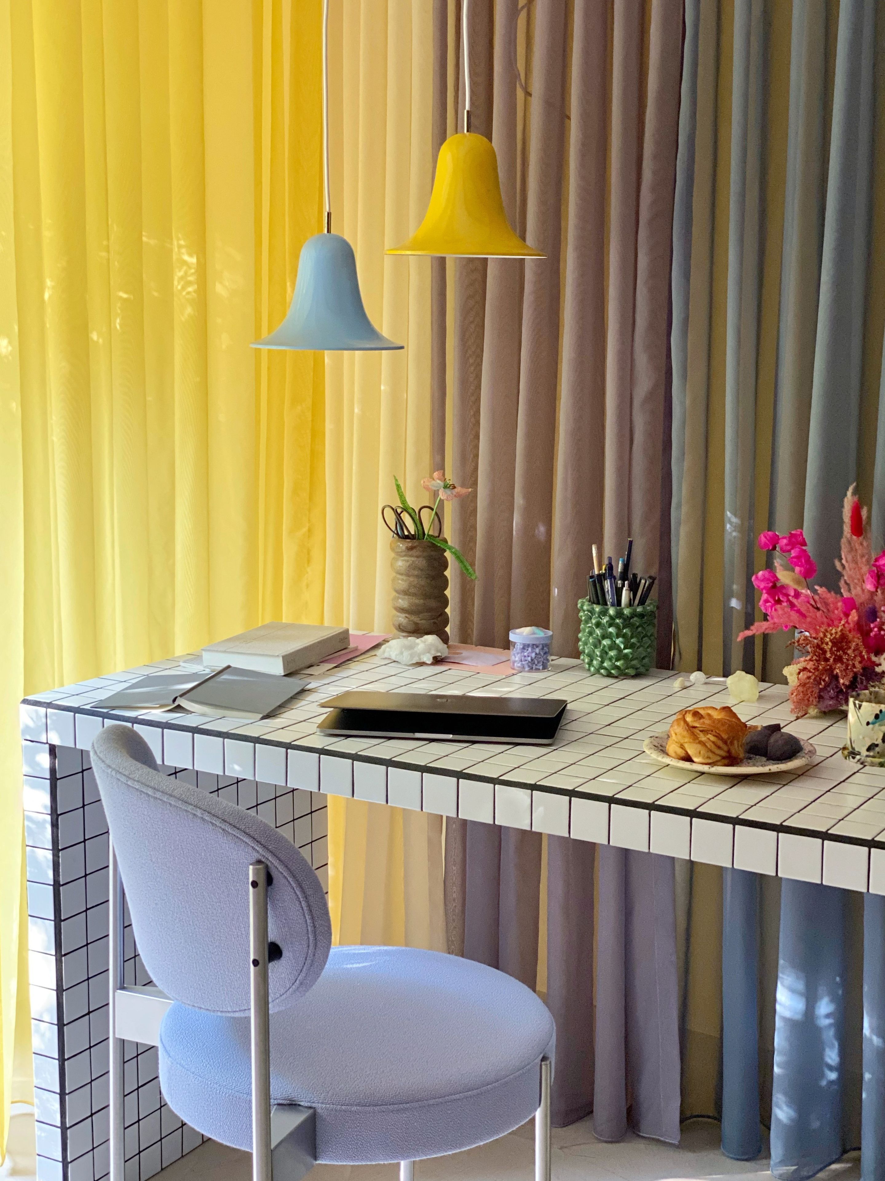 4️⃣ Pantop Table & Pendant Lamp – 컬러풀한 인테리어 포인트