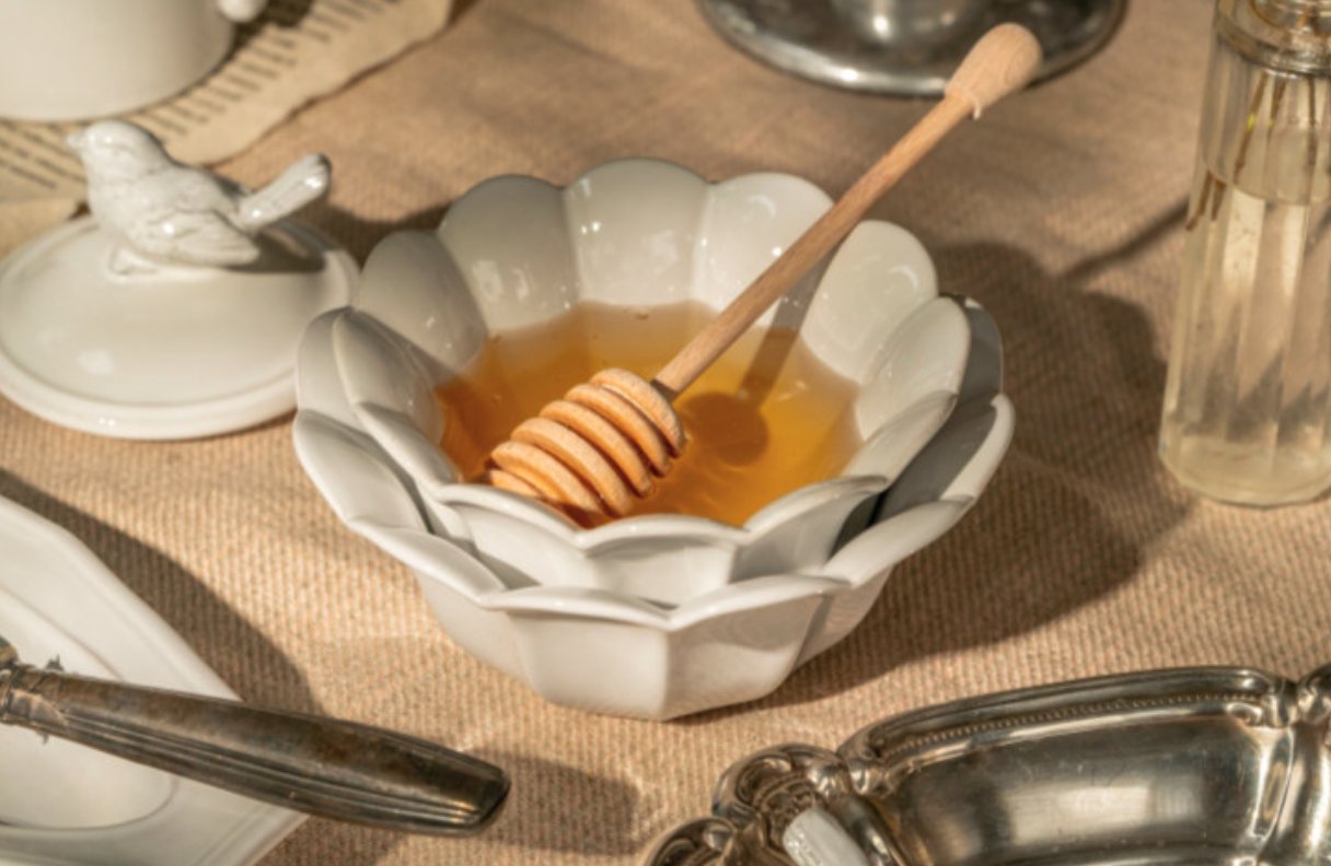 꽃찬기와 같이 사용할 수 있는 보울인데요, 밥과 국을 담는 것외에도 사진처럼 꿀을 담거나 디저트류를 담아도 어울립니다.