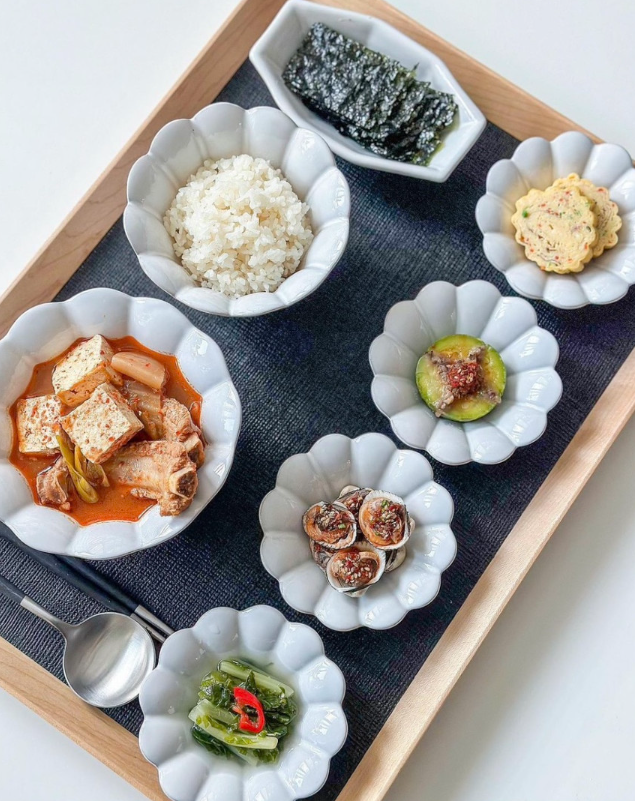 아기자기한 꽃 모양의 찬기가 반찬이 담기니 더욱 사랑스럽고 귀여운 느낌이죠?☺️