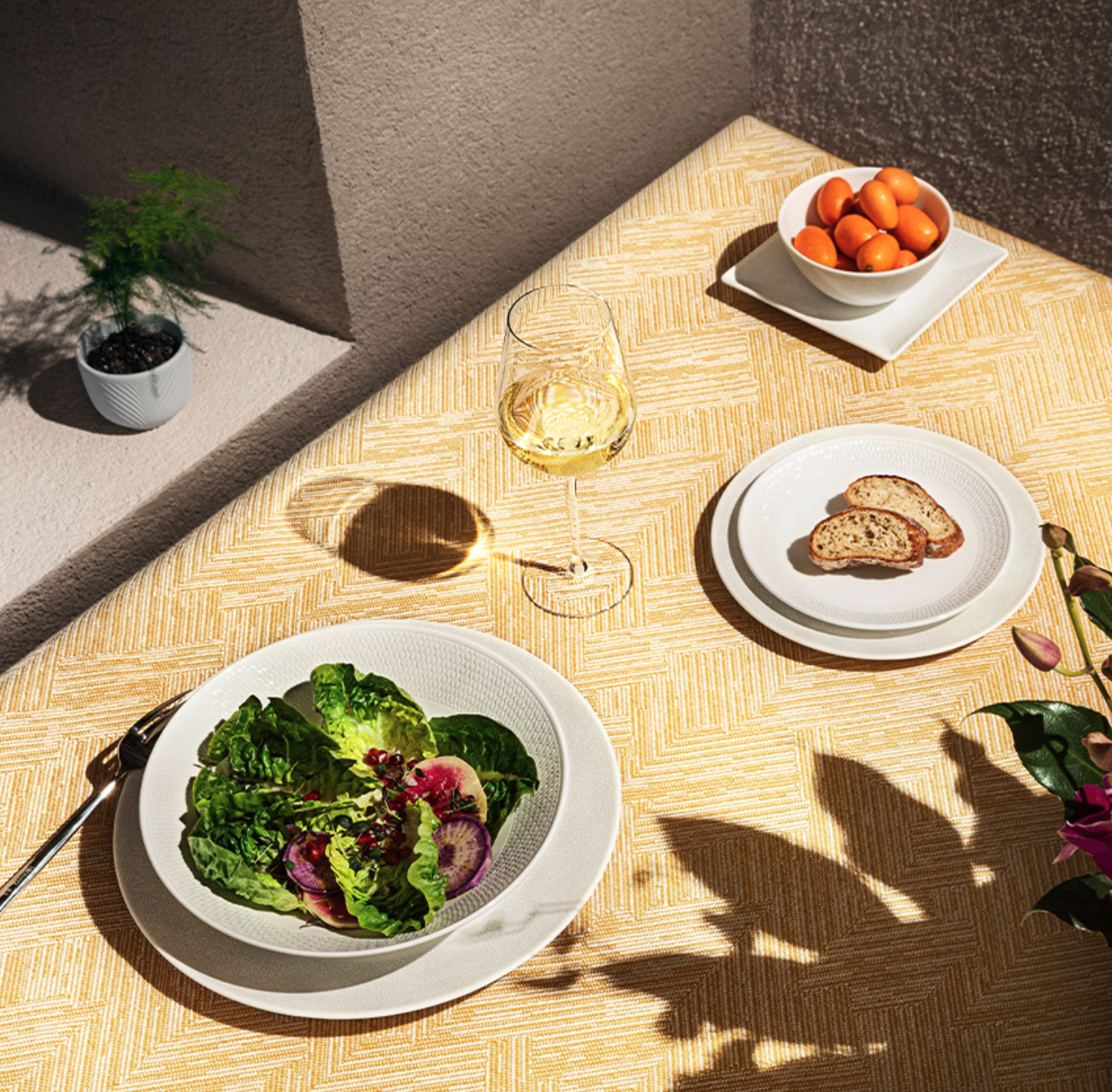 그래서 요즘 저의 식탁은 더 가볍게도, 더 근사하게도 변할 수 있어요. 아침엔 페스티비티로 담백하게, 오후엔 와일드 스트로베리(또는 잉크 블루) 로 티타임을 포근하게, 저녁엔 르네상스 골드 한 점으로 분위기를 드레스업하고, 사이사이는 지오로 깔끔하게 받쳐 주는 식이죠.